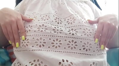 Young cutie in pink dress playing with her big tits in front of the camera – DepravedMinx